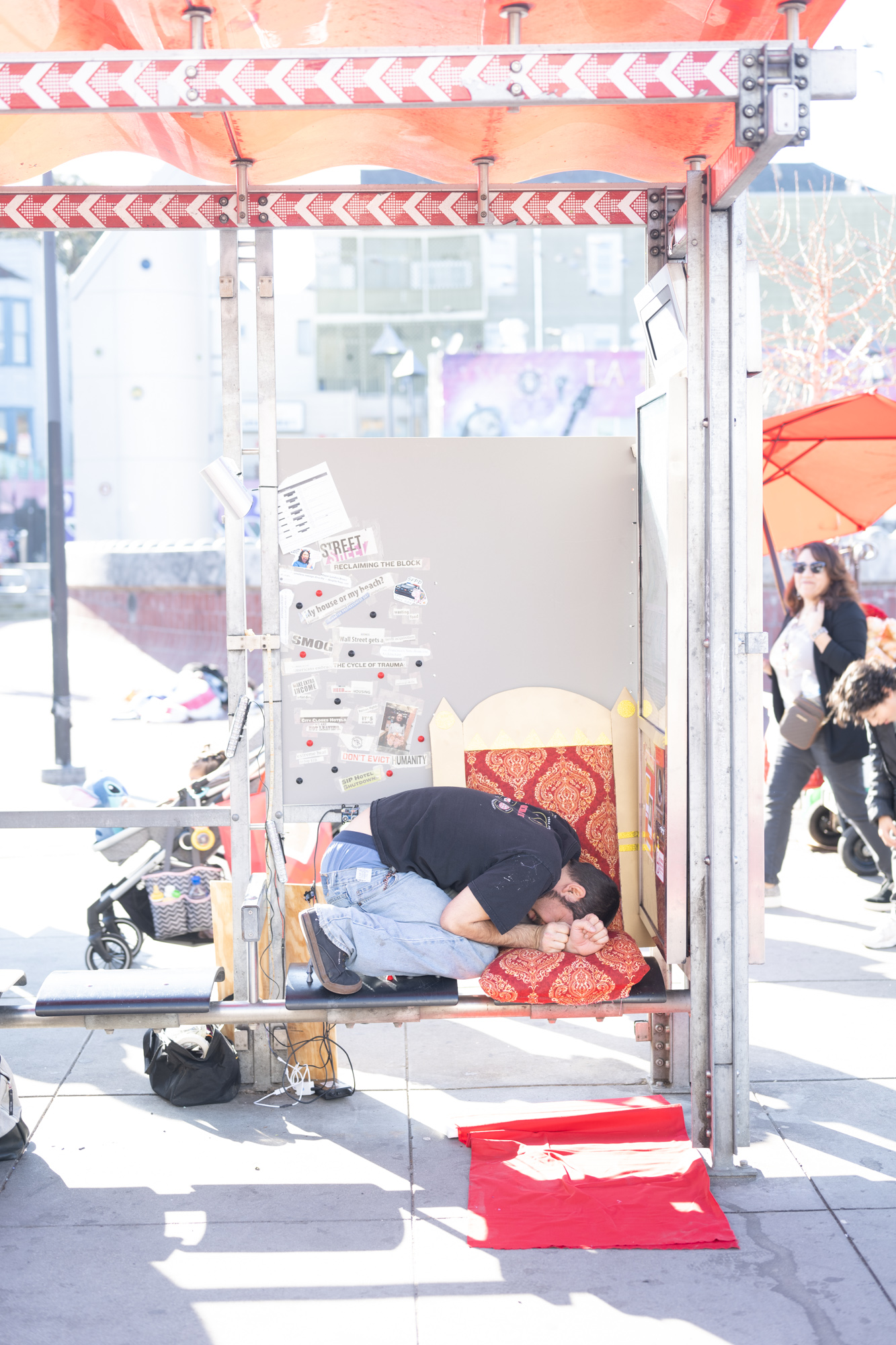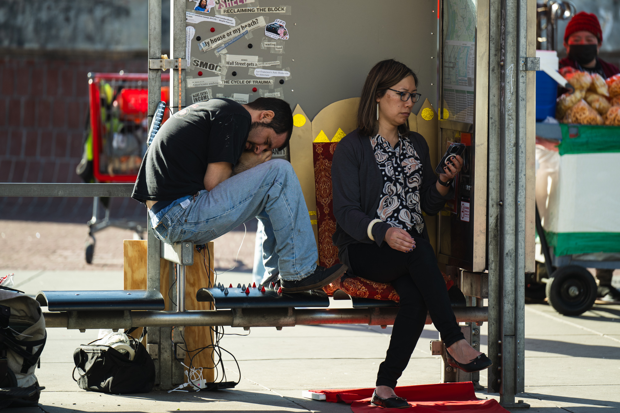 Our art installation, Structural Integrity, points attention to the changes forced on our community by exaggerating the duality of public accommodations. One seat is inviting and comfortable, while its antithetical mate features painful spikes and other repelling technologies currently employed against the unhoused population. The emotional and tactile impact of Structural Integrity seeks to foster fresh discussions by exposing the juxtaposition of pain and pleasure in public space.